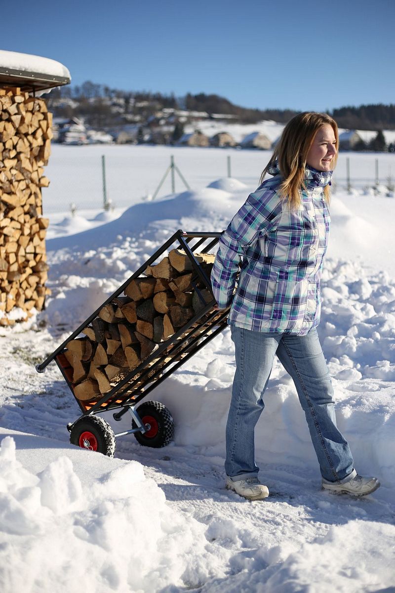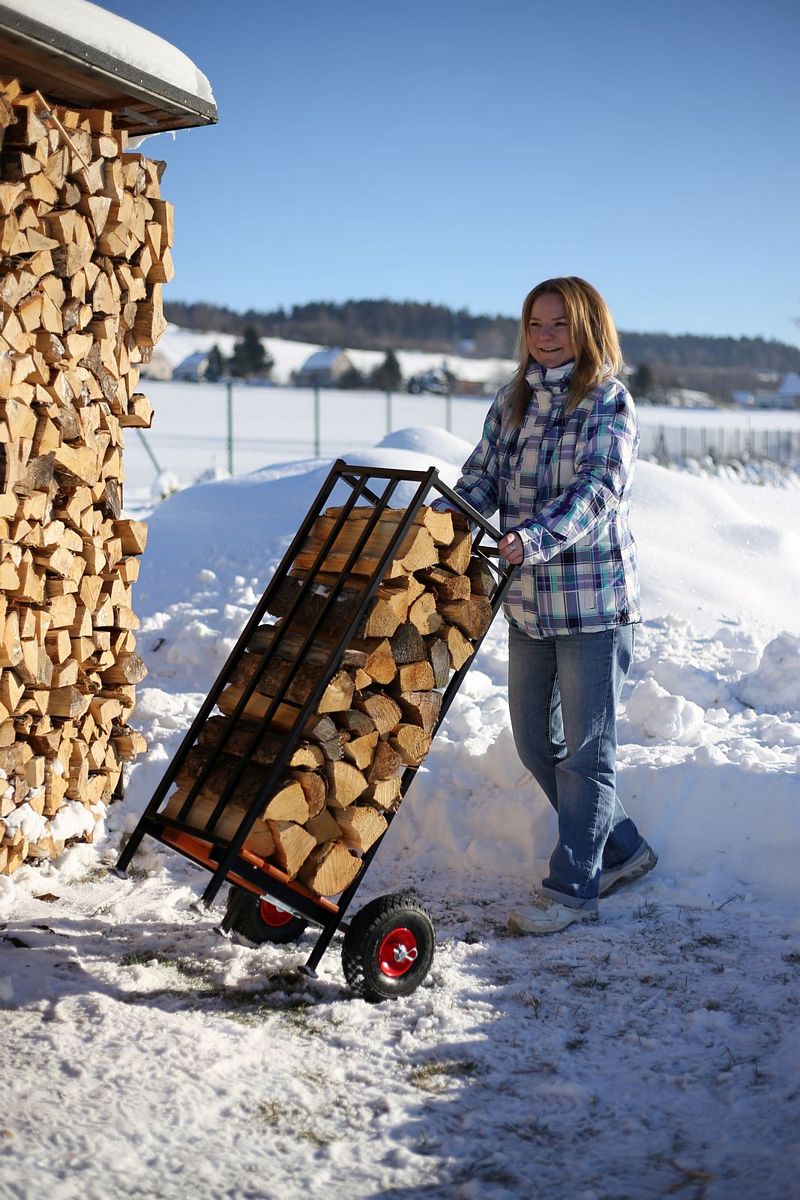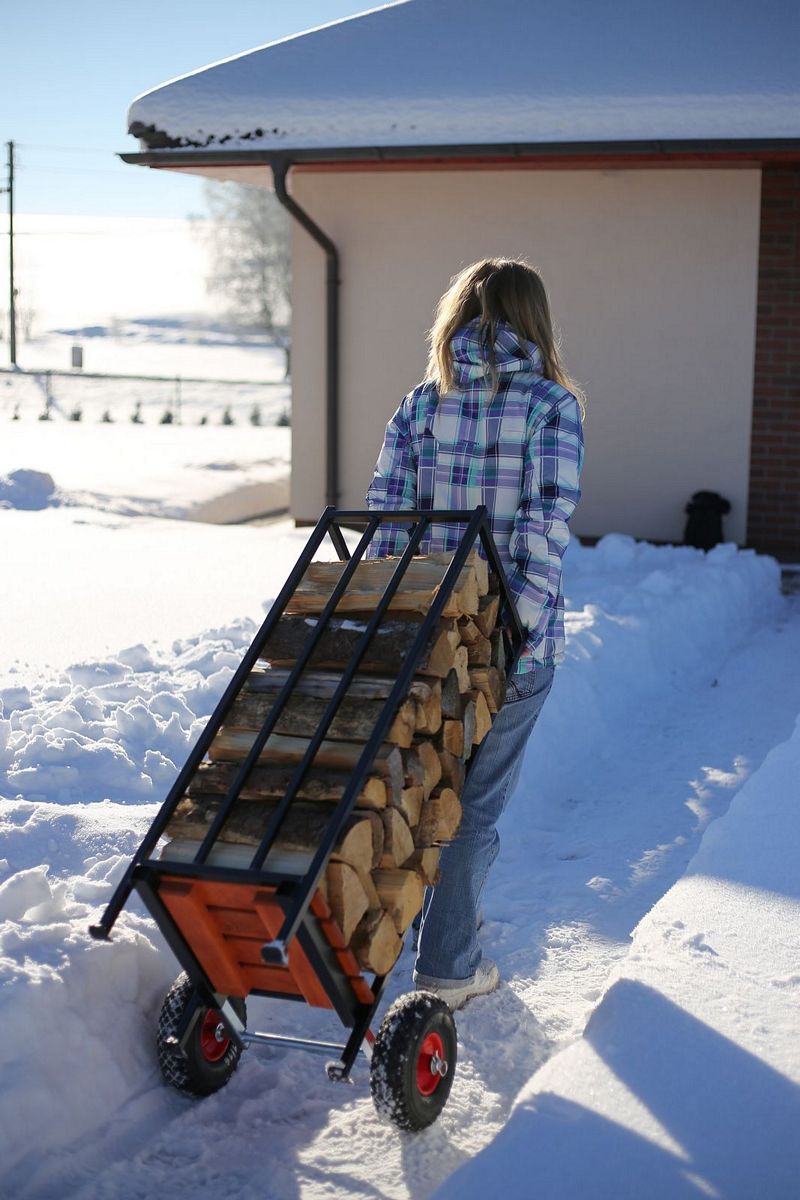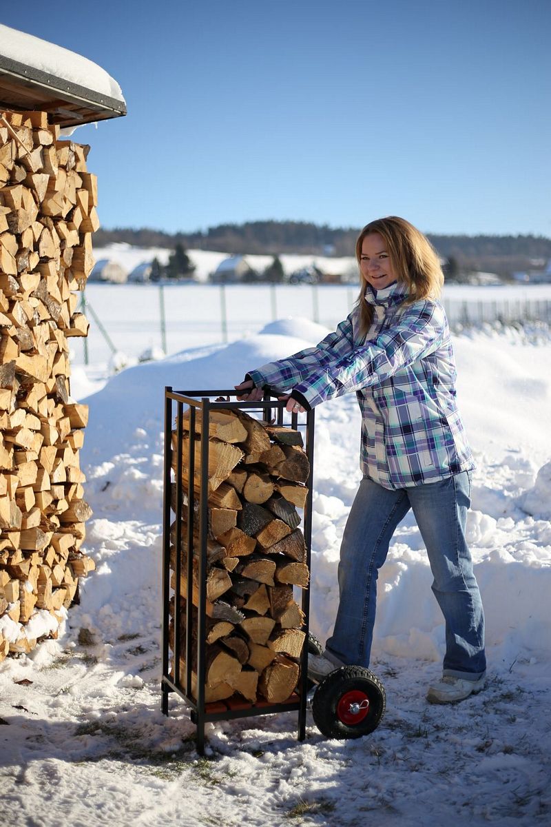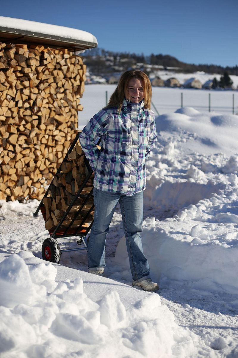 Manipulace s dřevníkem ve sněhu je jednoduchá.