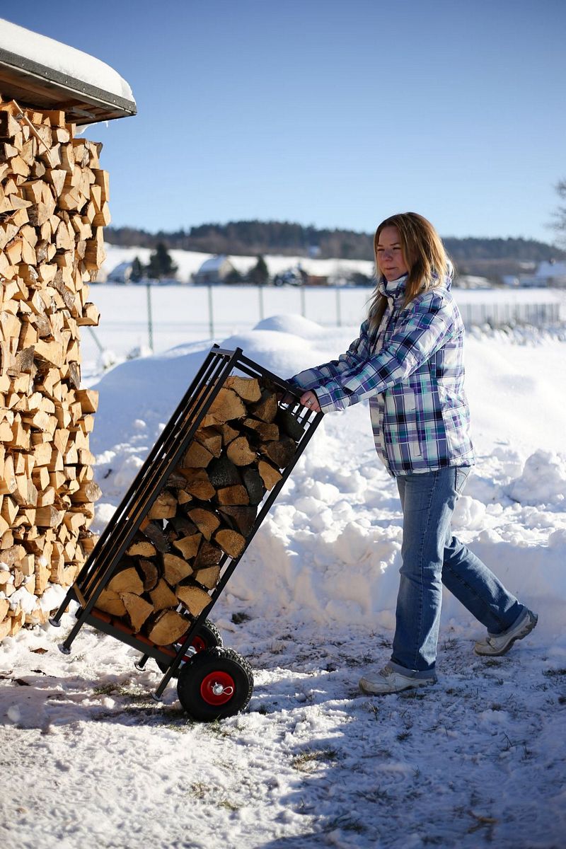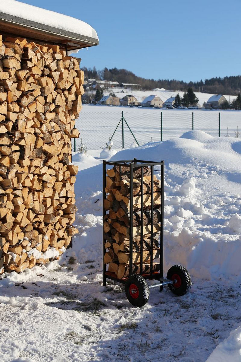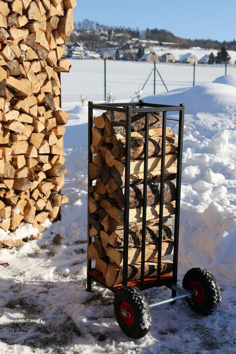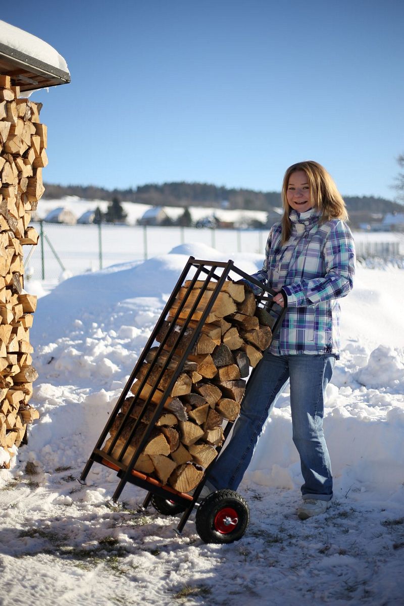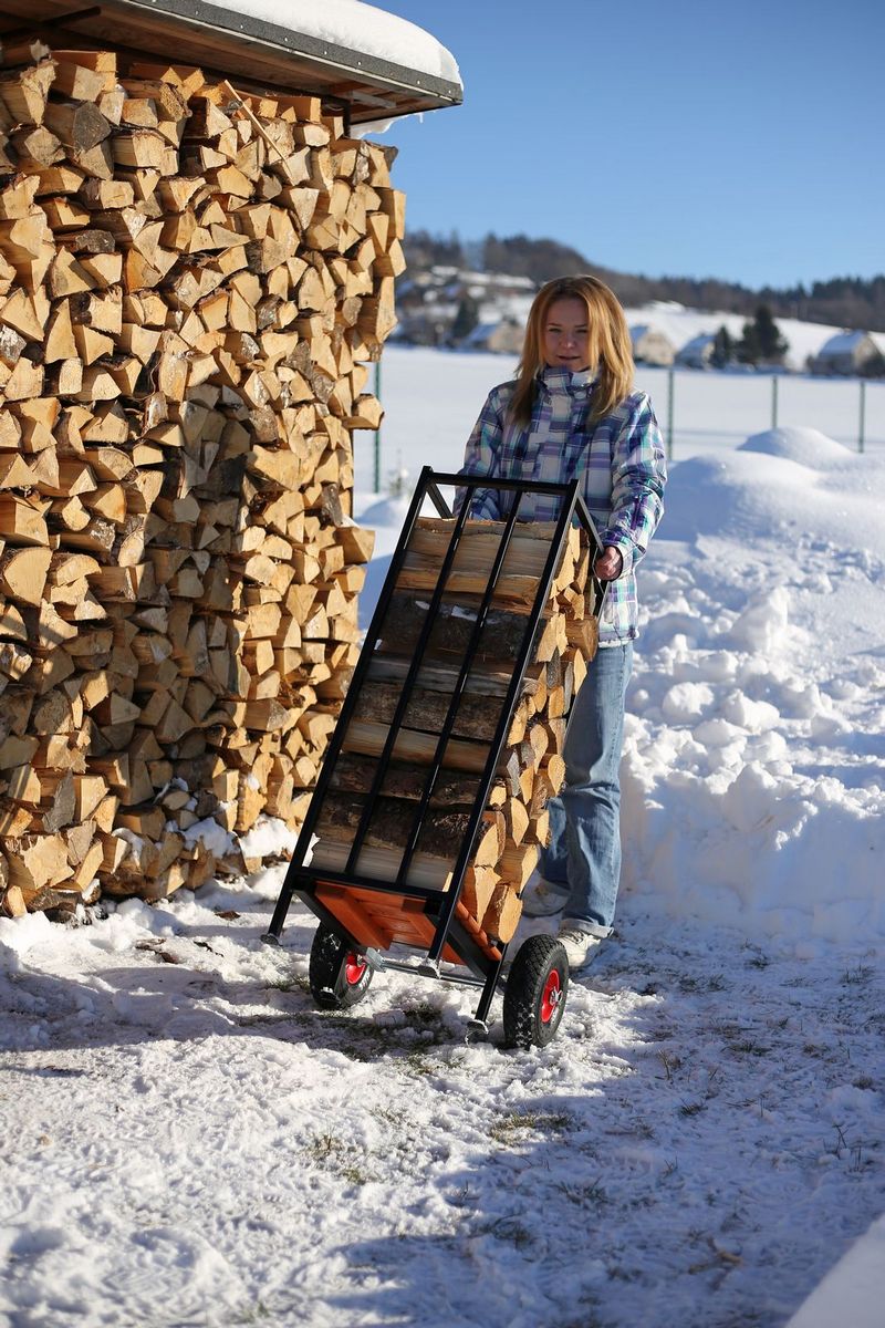 Manipulace s dřevníkem ve sněhu je jednoduchá.