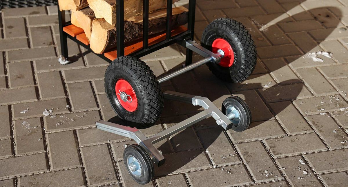 Můžete používat více dřevníků a jen jedny kolečka. Kolečka jednoduše zasunete do dřevníku. Po přesunu dřeva kolečka vyndáte a použijete na další dřevník.