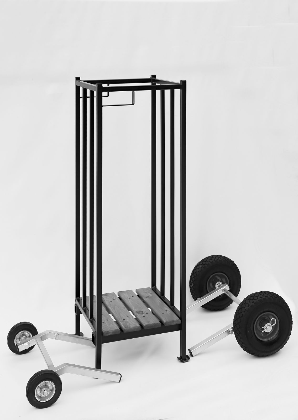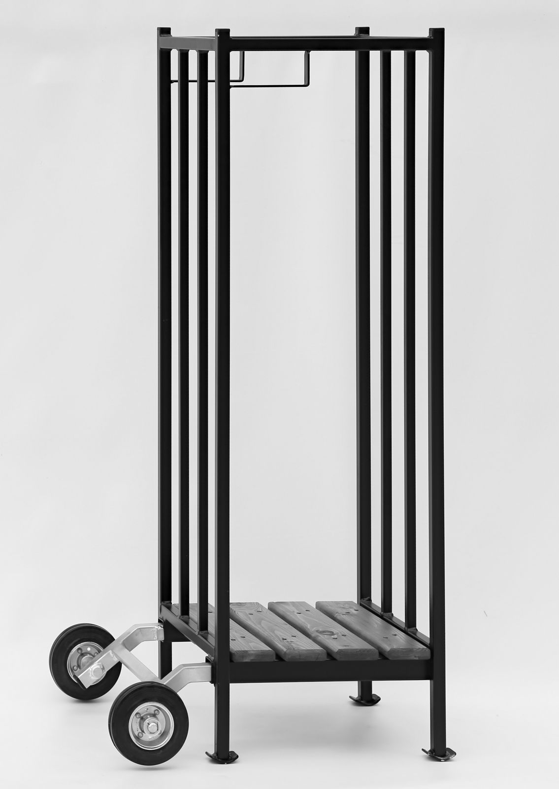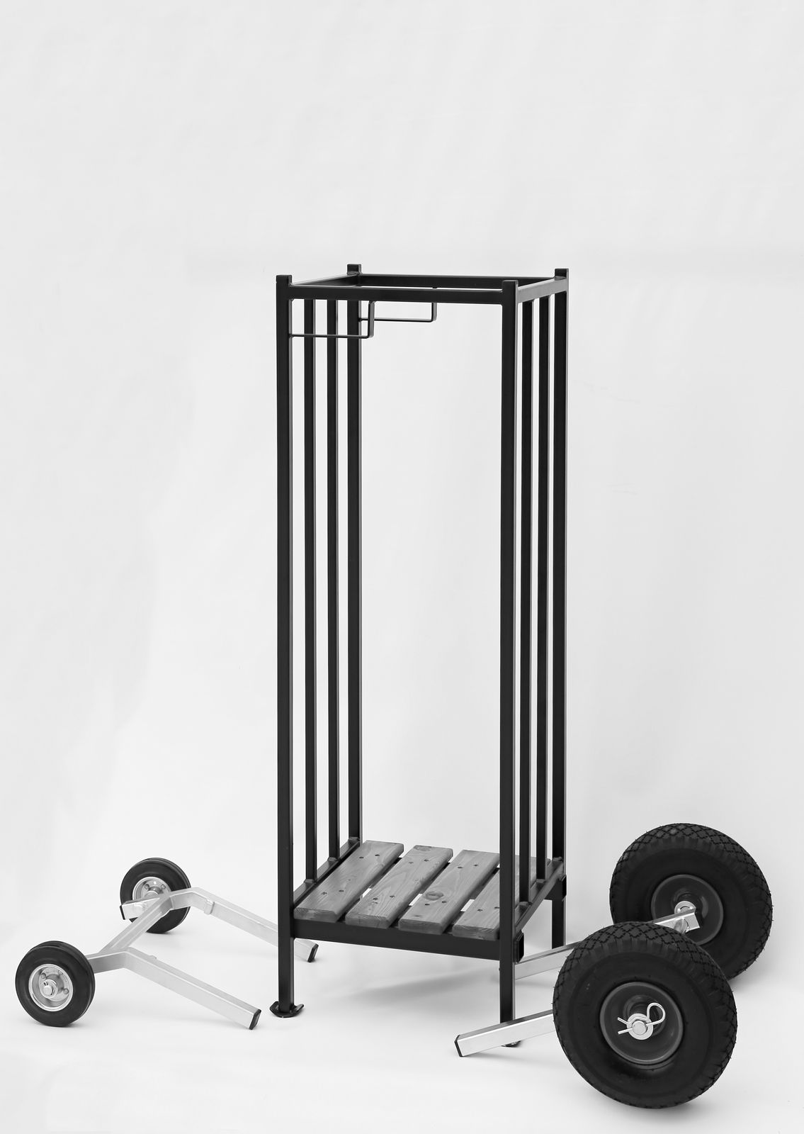 Dřevník (zásobník na dřevo) postavíte na požadované místo bez koleček. Venku k přepravě dřevníku použijete nápravu s terénnímy pneu. Uvnitř budovy použijete k přeprave dřevníku nápravu interiérovou. Dřevník je vyroben tak, aby manipulace s ním byla co nejjednodušší.
