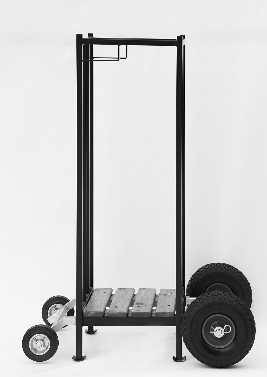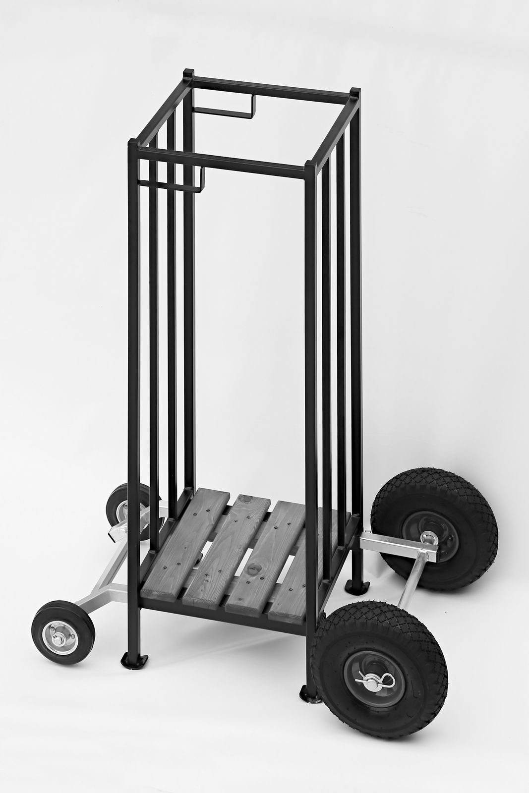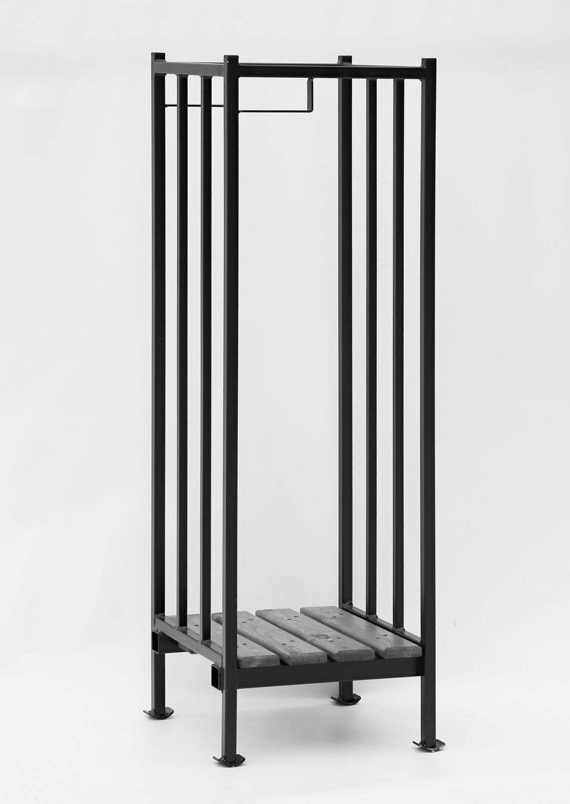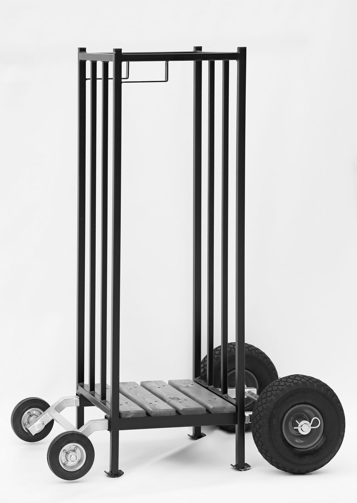 Dřevník (zásobník na dřevo) postavíte na požadované místo bez koleček. Venku k přepravě dřevníku použijete nápravu s terénnímy pneu. Uvnitř budovy použijete k přeprave dřevníku nápravu interiérovou. Dřevník je vyroben tak, aby manipulace s ním byla co nejjednodušší.